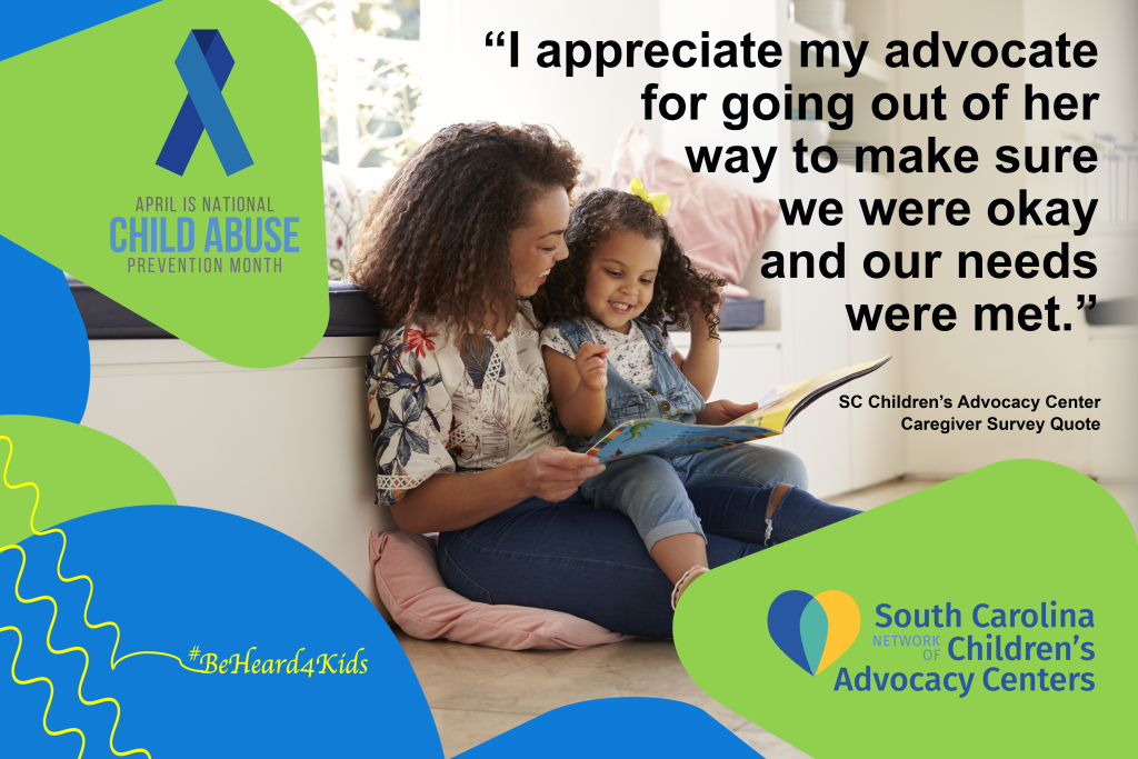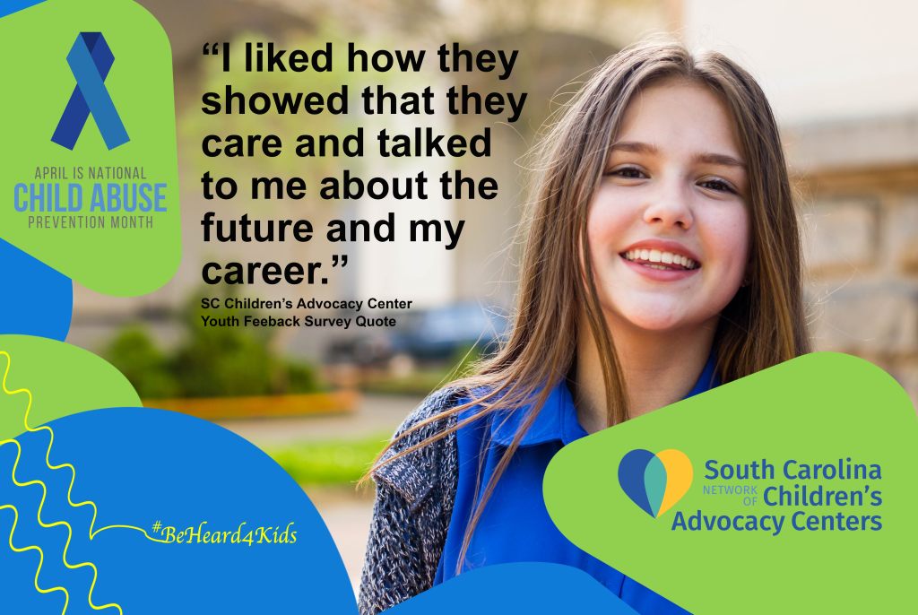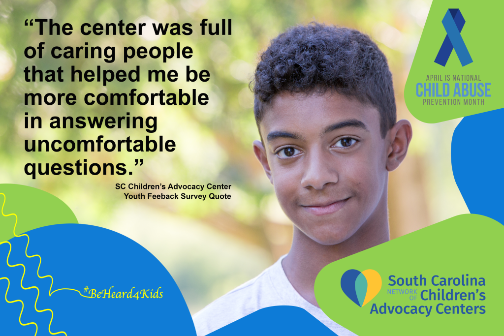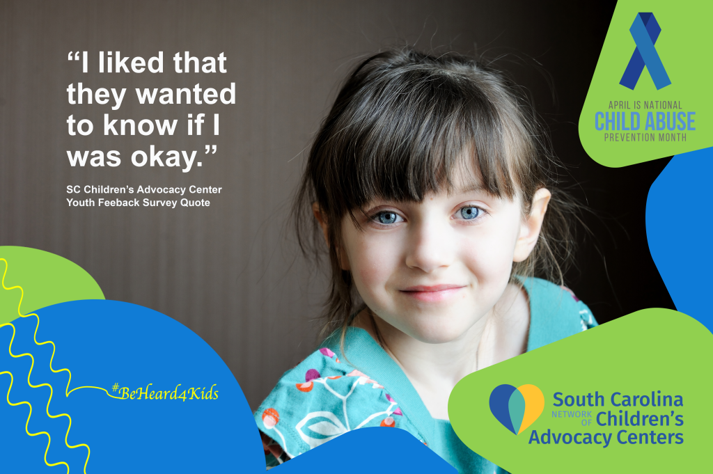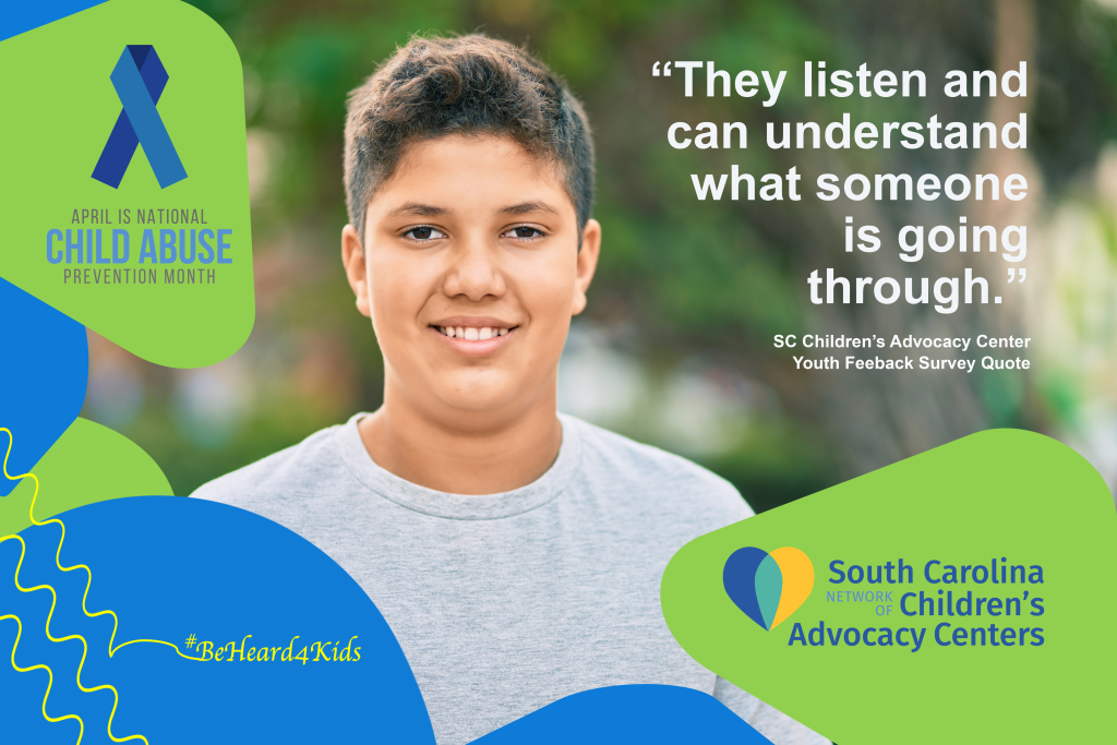 As part of Child Abuse Prevention Month and in celebration of Children’s Advocacy Center Day, we are highlighting the work of Children’s Advocacy Centers and multidisciplinary teams in the statewide response to child abuse. An important part of child abuse prevention is ensuring that there is an evidence based best practice response to child abuse in South Carolina. We have developed a number of social media posts for Child Abuse Prevention Month and have posted them here. Click on any of the pictures to view it in a large format or to download it to share with your child abuse prevention social media posts. Together we can #BeHeard4Kids during Child Abuse Prevention Month and all year long.
